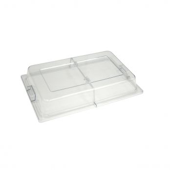Deckel für GN 1/1 Lebensmittelbehälter, aus klarem Polycarbonat. 53,3 x 32,8 x 75,6 cm