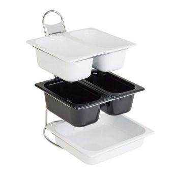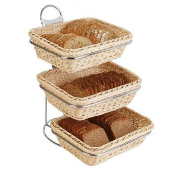 Servierständer, Größe 1/2. Zusammen mit Körben oder Schalen eignet sich der Ständer ideal zum Servieren verschiedener Erfrischungen. Er kann in Konditoreien, Restaurants, Hotelbuffets, Caterings oder beim Buffetbetrieb verwendet werden. Geschirr und Körbe sind nicht im Lieferumfang enthalten.
