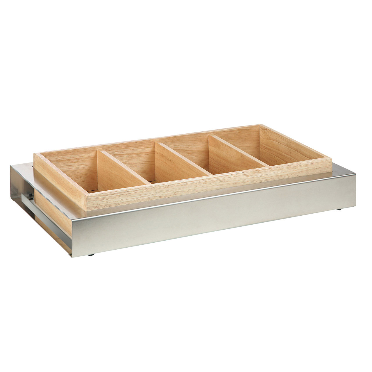 Aufsatz - Universalablage aus Holz Die Holzablage passt sowohl auf den Buffetrahmen aus Edelstahl als auch auf den Buffetrahmen aus HOLZ. Hergestellt aus hellem oder dunklem Holz, lackiert - Maße 50 x 30 x 9,5 cm - 4 Fächer