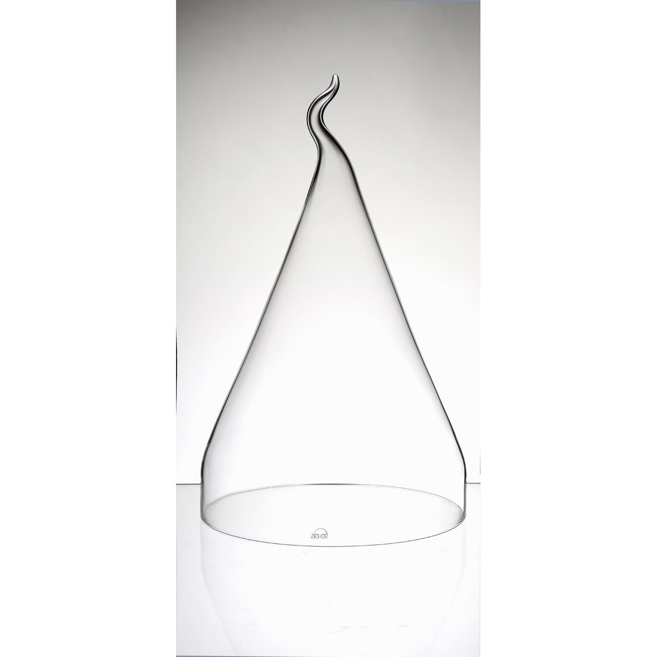 Glascloche aus Borosilikatglas, klar, geblasen, handgefertigt.