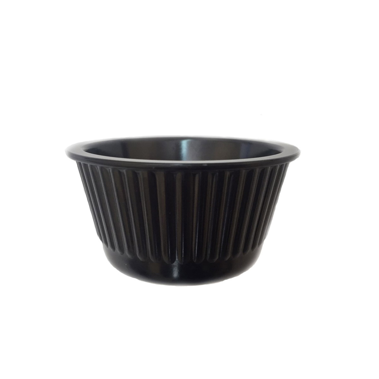 Soßenschale aus Melamin mit einem Volumen von 30 ml. Rund, schwarz. Geeignet für verschiedene Saucenarten. Temperaturbeständigkeit bis 100 Grad. C. Maschinenwaschbar.