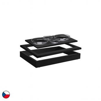Neutraler modul mit Aufsatz für 4 Schalen ist eine Komplettlösung für das Frühstücksmodule. Dieses Set besteht aus einem Basisrahmen (58 x 40,5 x 6,5cm), ergänzt durch einen oberen Holzrahmen für GN1/1 sowie folgendes Zubehör: ein oberer Aufsatz für vier Schalen, 2 x Glasschale (12cm) und 2 x Glasschale (20cm). Das schwarze Holzdekor fügt sich harmonisch in jede Umgebung ein – sei es im Frühstücksbereich eines Hotels, bei einem Firmenmodule oder bei Catering-Veranstaltungen. Dank des einfachen modularen Systems lässt sich das Set flexibel verschieben, kombinieren und an unterschiedliche Raumgegebenheiten anpassen.