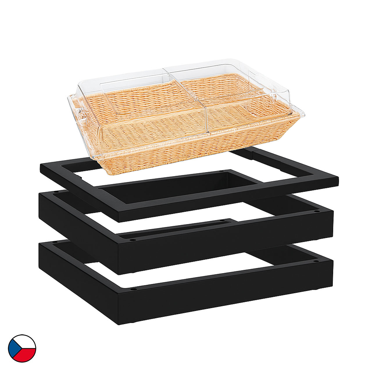Neutraler modul mit Brotkorb ist eine Komplettlösung für das Frühstücksmodule. Dieses Set besteht aus zwei Basisrahmen (58 x 40,5 x 6,5cm), ergänzt durch einen oberen Holzrahmen für GN1/1 sowie folgendes Zubehör: ein Brotkorb im GN1/1-Format mit Abdeckung. Das schwarze Holzdekor fügt sich harmonisch in jede Umgebung ein – sei es im Frühstücksbereich eines Hotels, bei einem Firmenmodule oder bei Catering-Veranstaltungen. Dank des einfachen modularen Systems lässt sich das Set flexibel verschieben, kombinieren und an unterschiedliche Raumgegebenheiten anpassen.