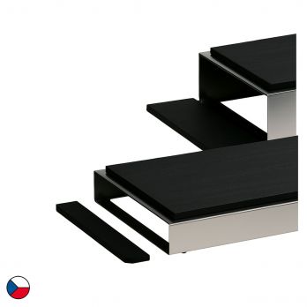 Die Seitenverkleidung dient zum seitlichen Abschluss des niedrigen Edelstahlrahmens. Das Sideboard ist aus schwarzes Buchenholz gebeiztem Buchenholz gefertigt. Die Deckschicht ist mit einem unbedenklichen, für den Kontakt mit Lebensmitteln geeigneten Lack lackiert.