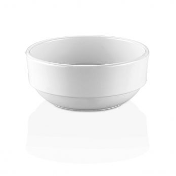 Suppenschüssel aus weißem Melamin. Geeignet für Gefrierschrank und Mikrowelle, spülmaschinenfest. Kann unter der Nummer 100031422 mit einer Gehaltsobergrenze versehen werden.