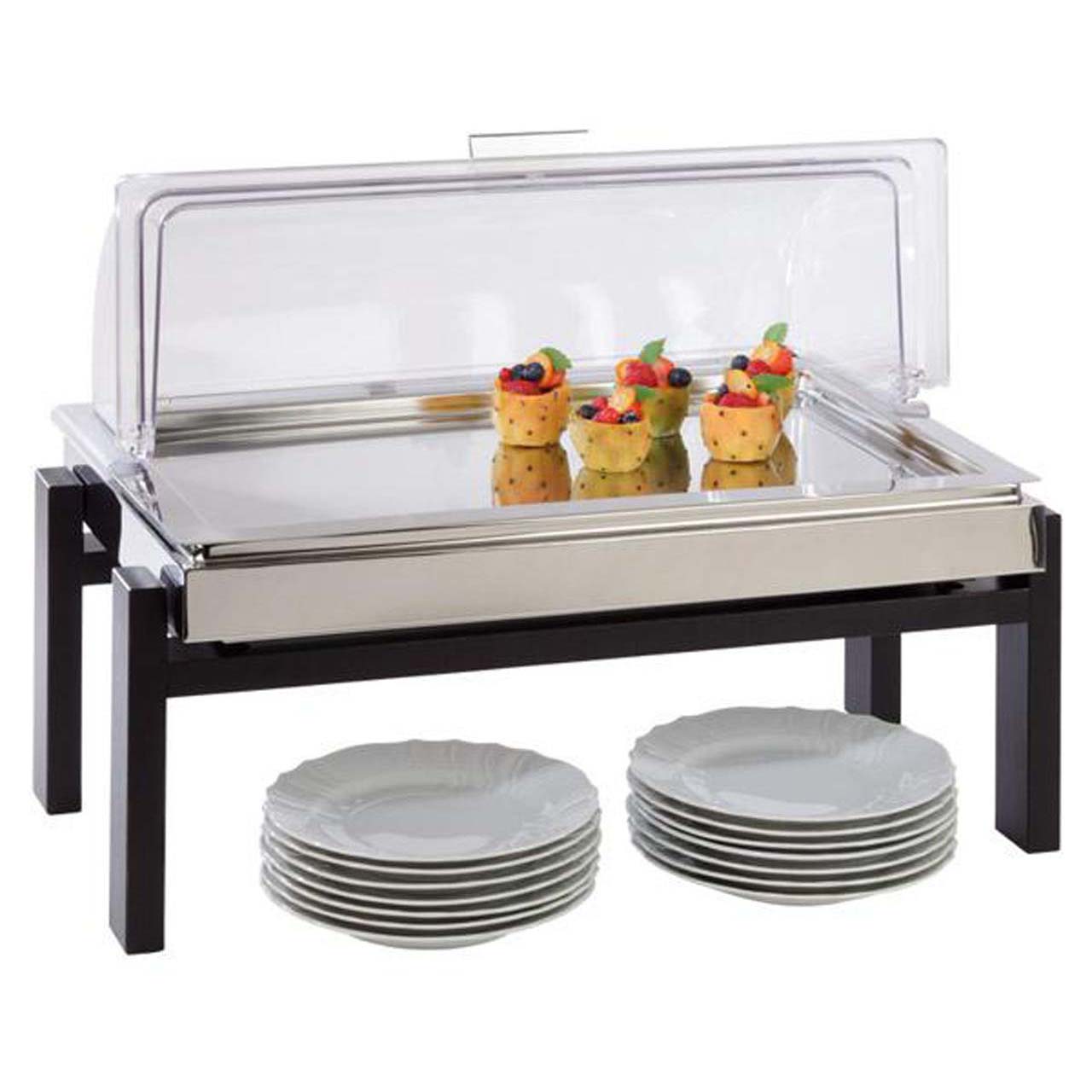Stabiles und elegantes Gestell für GN 1/1 FRAMES (Bestellnummer 100035430) aus hochwertigem Buchenholz. Ideal für den professionellen Einsatz in Gastronomie, Catering oder bei Buffetpräsentationen. Das robuste dunkelbraune Holzgestell sorgt für lange Haltbarkeit und stilvolles Design. Geeignet für Tabletts mit FRAMES-Abdeckung.