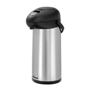 Gehäuse aus lebensmittelechtem Edelstahl, Griff und Deckel aus robustem, schwarzem Kunststoff. Tragegriff, Pumpenverschluss, Boden mit integriertem Ring (ermöglicht 360°-Drehung). Fassungsvermögen: 5 Liter. Abmessungen: B 181 x T 245 x H 428 mm. Gewicht: 2,4 kg. Mindesthöhe 370° unterhalb des Ablasshahns, Durchmesser der Standfläche 150 mm, Temperaturverlust pro Stunde ca. 1,7 °C. Verriegelungssystem, Deckel mit Ausgießmechanismus, abnehmbarer Deckel für einfache Reinigung.