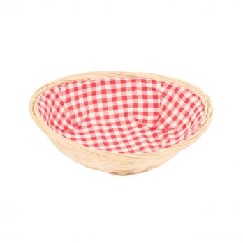 Ovaler Gebäckkorb aus Weide mit Stoff. Größe 24 x 7 cm.