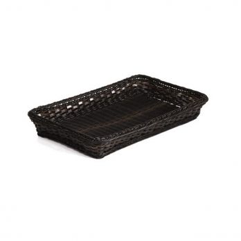 Korb aus schwarzem Polypropylen in Rattanoptik. Spülmaschinenfest. Größe GN 1/4 (26,5 x 16,2 cm), Höhe 10 cm.