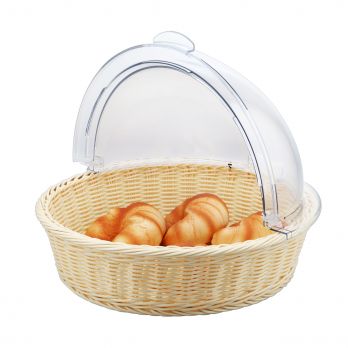 Runder Korb aus Polypropylen-Rattan mit Rolltop aus Polycarbonat. Abmessungen 40 x 10 cm.