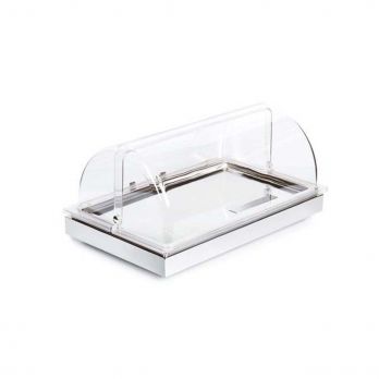 Praktisches gekühltes Tablett FRAMES ist ideal für Zuhause und Gastronomie. Das Set besteht aus 1 GN 1/1 Basiselement aus Edelstahl, 1 GN 1/1 Edelstahl-Tablett, einer Rolltop-Haube und 1 Kühlakku für die langanhaltende Temperaturhaltung von Speisen. Die transparente Haube und hochwertiger Edelstahl 18/10 sorgen für Hygiene, Langlebigkeit und ein elegantes Erscheinungsbild.