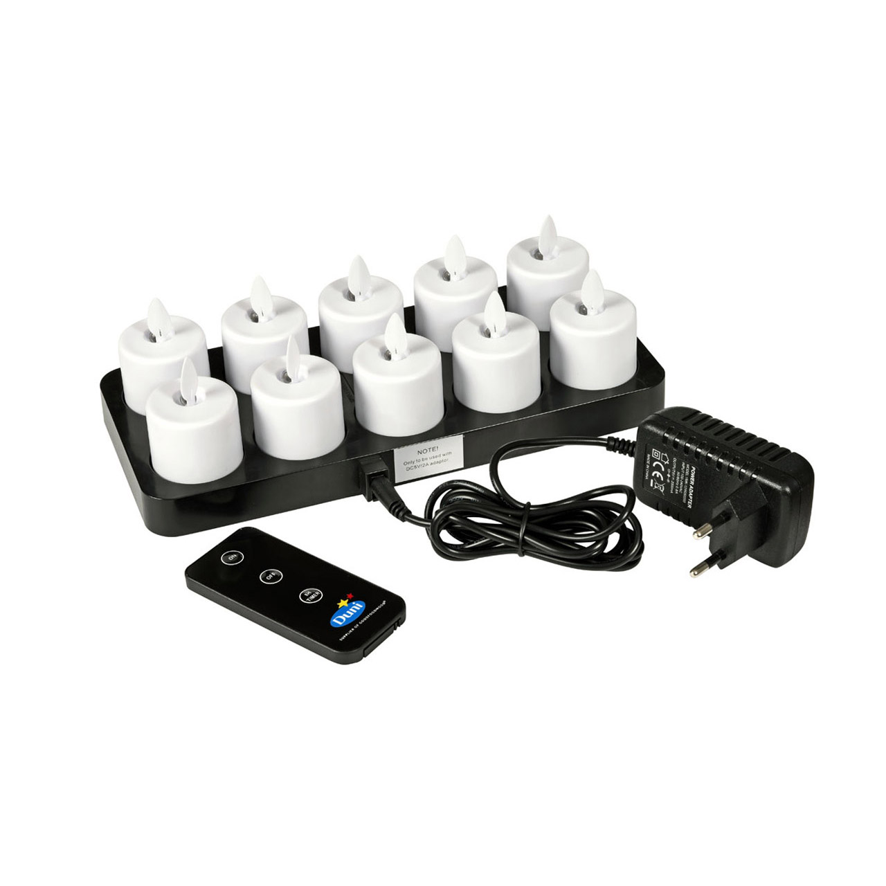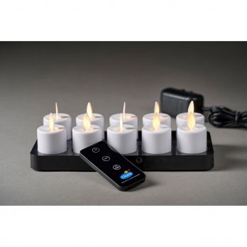 LED-Set: Kerze 10 Stück warmweiß + Ladestation