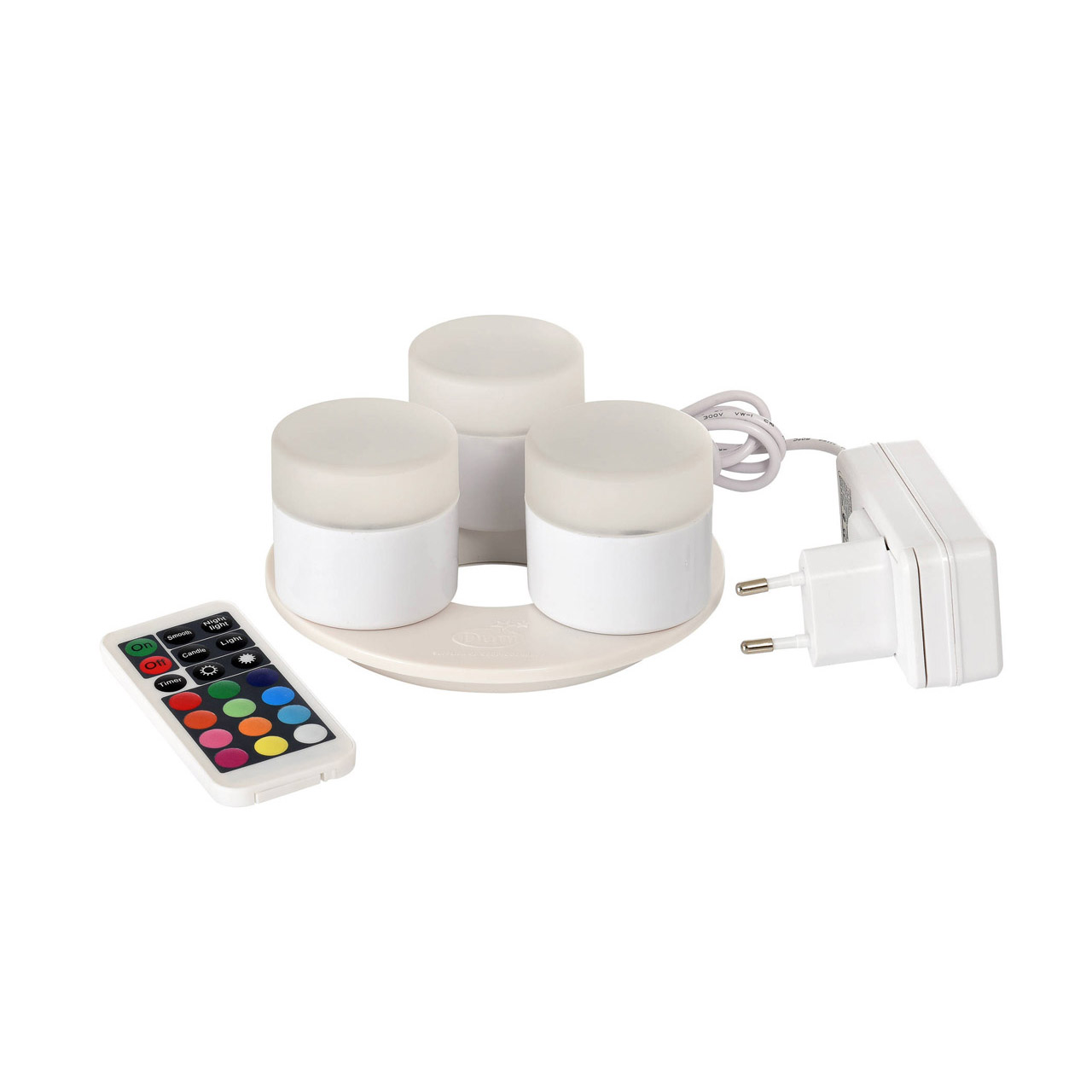 LED-Set: Kerze Mini 3 Stück mehrfarbig + Ladestation