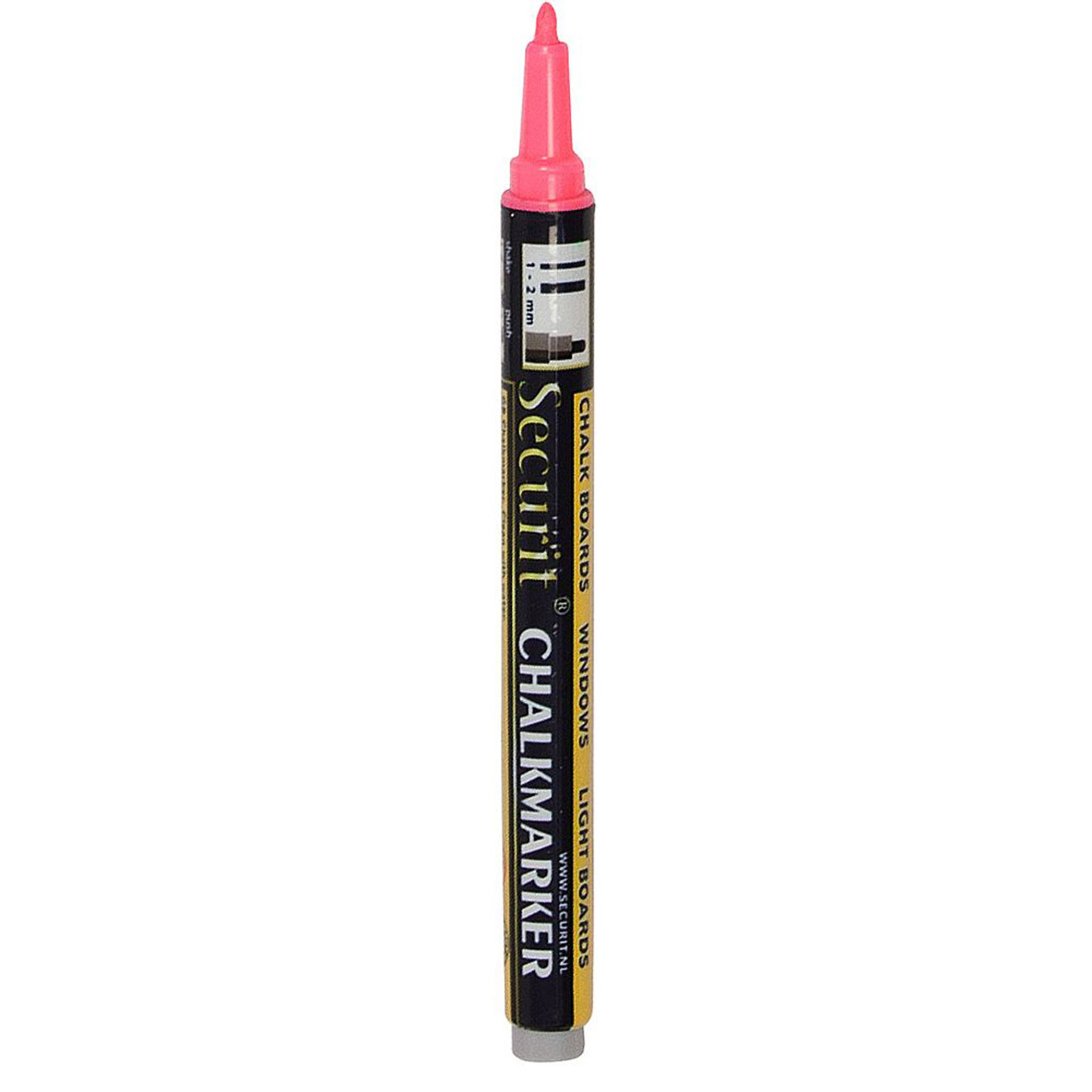 Kreide-Mikromarker, Spitzenbreite: 1 - 2 mm, rosa. Nach dem Trocknen ist es beständig gegen Verschmieren, Ausbleichen und Abwaschen durch leichten Regen. Es wird mit einem Schwamm gereinigt.