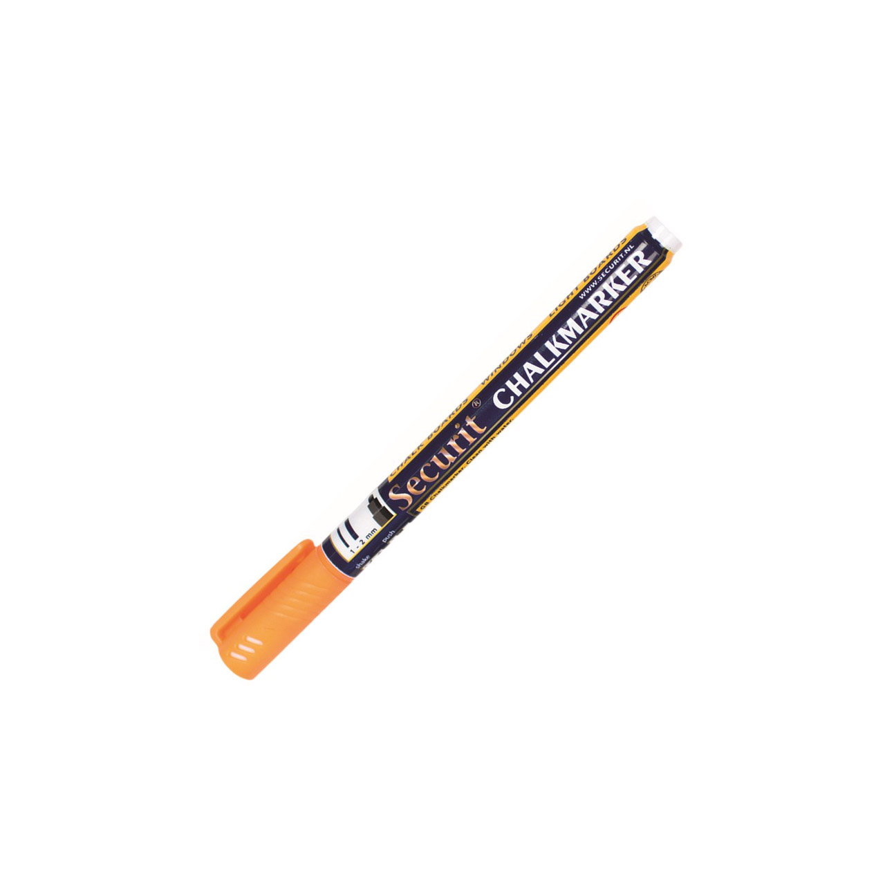 Kreide-Mikromarker, Spitzenbreite: 1 - 2 mm, orange. Nach dem Trocknen ist es beständig gegen Verschmieren, Ausbleichen und Abwaschen durch leichten Regen. Es wird mit einem Schwamm gereinigt.