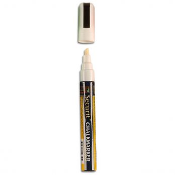 Mittlerer Kreidemarker, Spitzenbreite: 2 - 6 mm, lila. Nach dem Trocknen ist es beständig gegen Verschmieren, Ausbleichen und Abwaschen durch leichten Regen. Es wird mit einem Schwamm gereinigt.