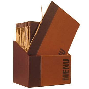 Schachtel mit 20 Speisekarten A4, mit 1 Doppeleinlage (4 Seiten), hellbraun