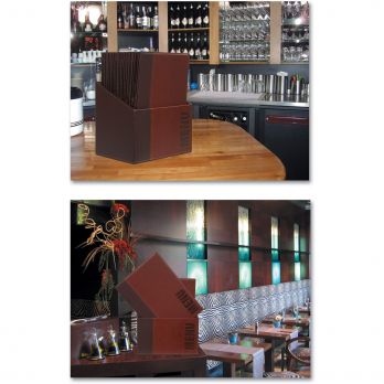 20 Stück stilvolle, moderne Speisekarten im A4-Format in einer Box mit aufgedruckter Beschreibung und dunklem Streifen auf der linken Seite sind perfekt für jedes Restaurant mit modernem Interieur. Die Menüs bestehen aus Lederimitatmaterial. Der Anhang ermöglicht das Hinzufügen oder Ändern der Beilagen, die jeweils 4 Seiten des Angebots enthalten. Das Muster ist zweifarbig, mit dunklem Rand am Rücken, die gedruckten Aufschriften sind dunkel, vertikal ausgerichtet. Die Innenseiten haben ein Strukturmuster. Weitere Einlagen im 10er-Pack finden Sie unter der Nummer 100023066.