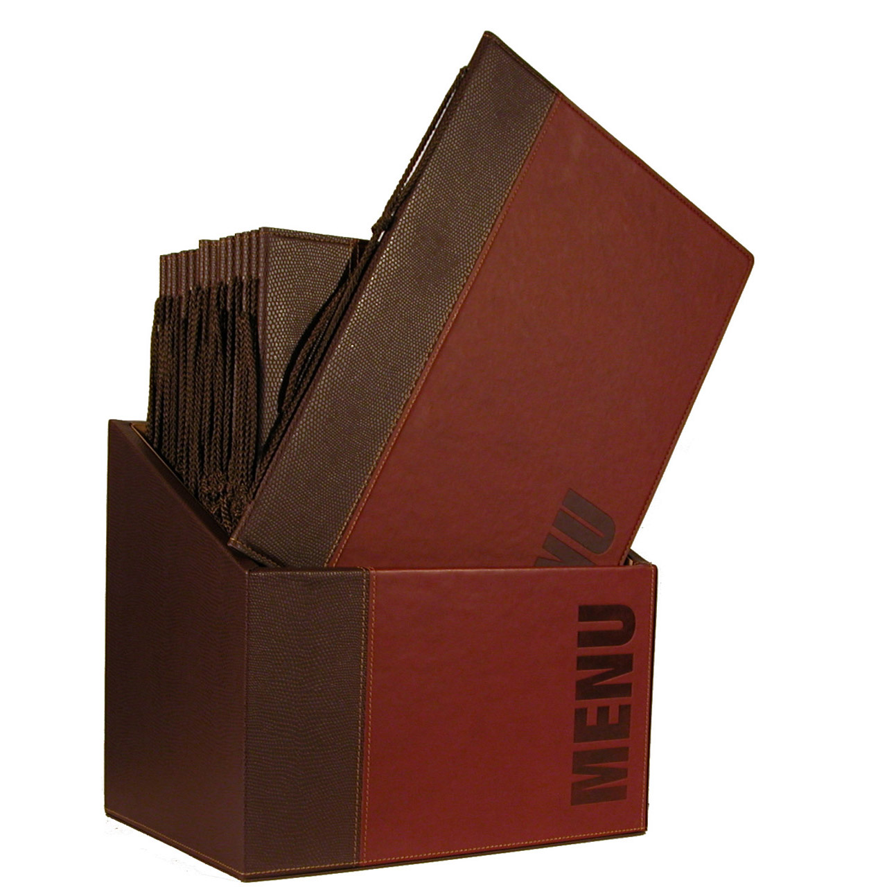 Schachtel mit 20 Speisekarten A4, mit 1 Doppeleinlage (4 Seiten), bordeauxrot