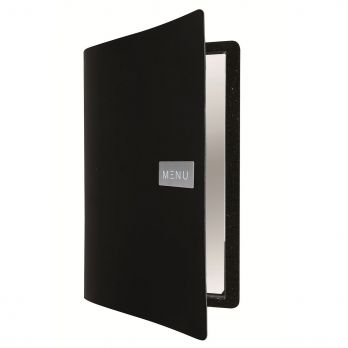 Speisekarte A4,Glattleder, Metalletikett, schwarz