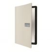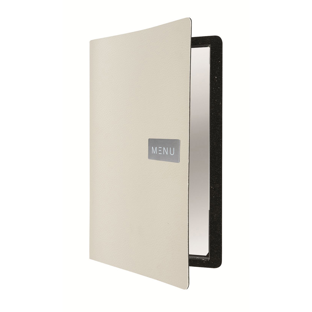 Speisekarte A4, Leder, feinere Oberfläche, Metallschild, weiß