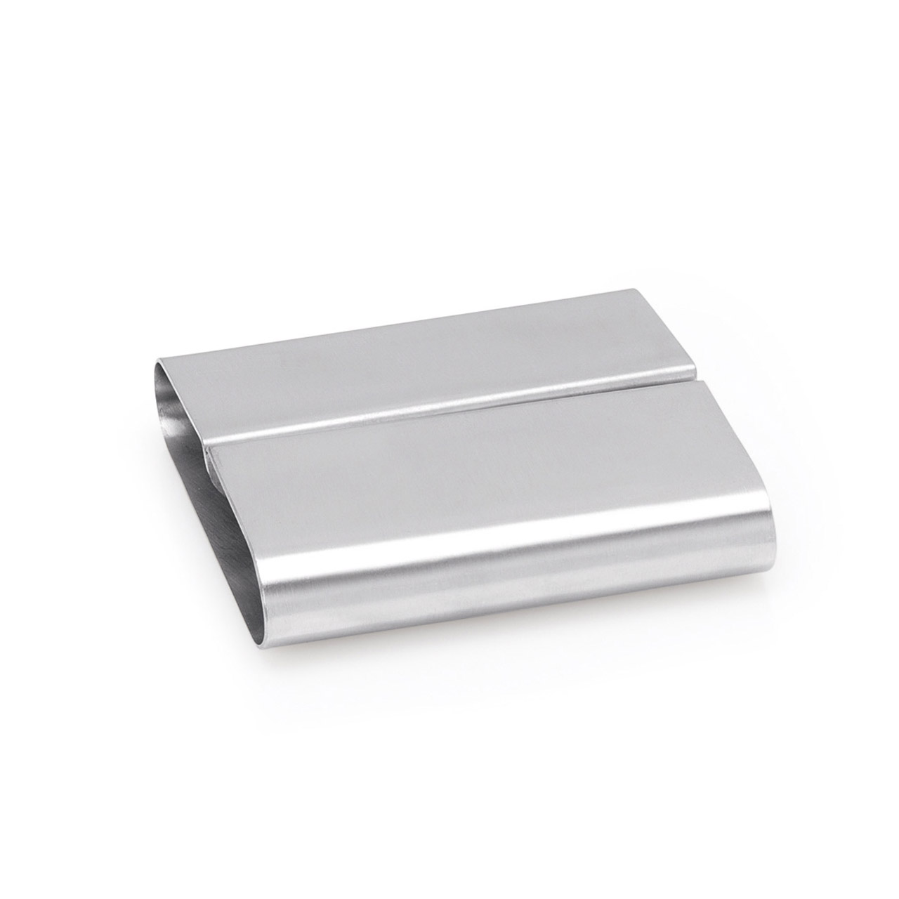 Halter/Ständer aus Edelstahl zum Einlegen z.B. einer Steuerquittung oder eines Angebots. Größe 8 x 7 cm, Höhe 2 cm.