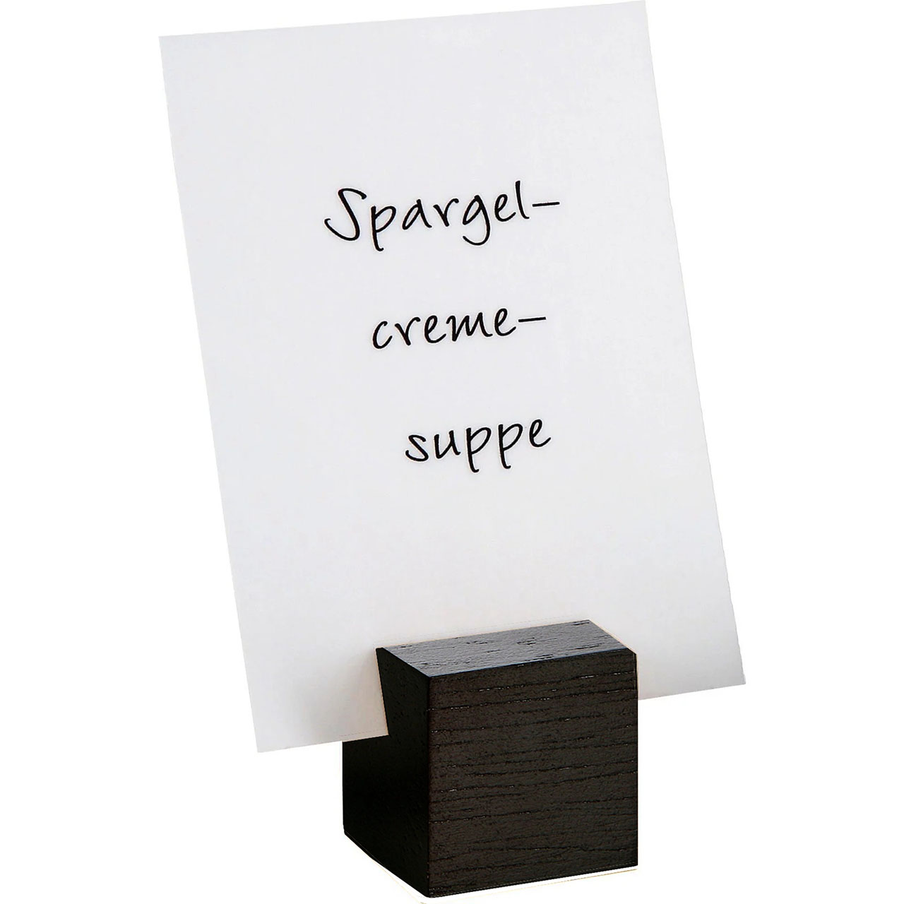 Menüständer aus Holz. Maße: 3 x 3 x 3 cm.