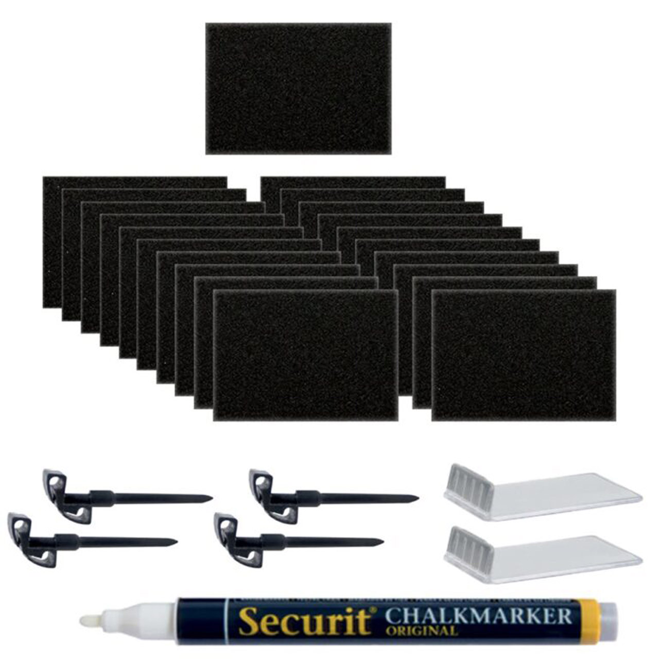 Zusätzliche Schreibtafeln. Sie eignen sich ideal zum schnellen Austausch vorbeschrifteter Tafeln für eine immer wieder wechselnde Speisekarte. Die Tafeln werden im 20er-Set verkauft. Dieses Set enthält einen weißen SECURIT-Marker, 4 Einsteck- und 2 transparente Ständer. A8-Format (5,2 x 7,4 cm).