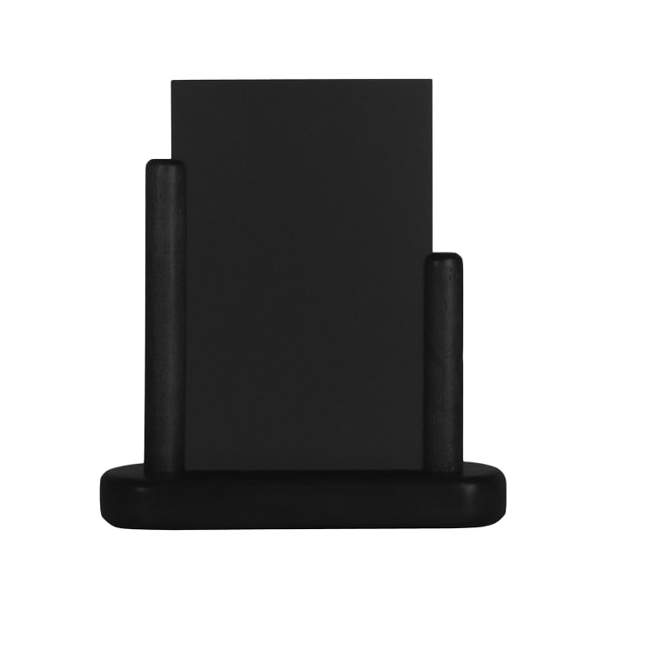 Die Tisch-Menütafel verfügt über einen Ständer und einen Rahmen aus hartem Qualitätsholz mit witterungsbeständiger Oberfläche. Die Oberfläche der Tische ist porenfrei, ideal für die Verwendung von Kreidemarkern. Geschriebene Texte in dieser Kombination sind bei normalem Gebrauch wasser-, wisch- und schmutzbeständig. Maße der Schreibfläche 10 x 15 cm. Ausführung Schwarz.