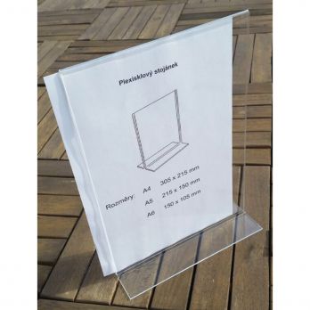 Kunststoffständer in Form eines umgekehrten „T" aus transparentem Kunststoff. Es eignet sich zum Einfügen von Angeboten und ähnlichen Informationen. A4-Format (30,5 x 21,5 cm). 1 Stück pro Packung