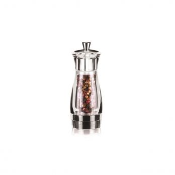 Zum einfachen Würzen der Speisen ist die Mühle mit einem Keramikmahlwerk mit einstellbarer Mahlstärke ausgestattet. Hergestellt aus haltbarem, transparentem Kunststoff und rostfreiem Stahl. Mit einem feuchten Tuch reinigen, nicht spülmaschinenfest.