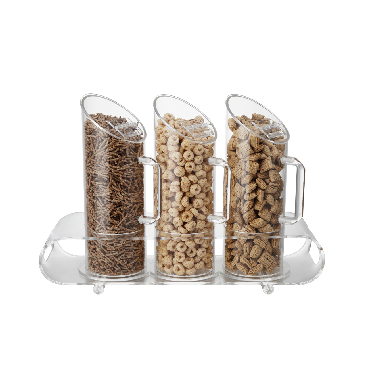 Müslispender, drei Behälter mit je 1 Liter Fassungsvermögen. Abmessungen: 39,5 x 12 x 90 cm.