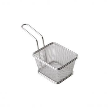 Mini-Edelstahlkorb, ideal zum Servieren von Speisen. Empfohlen für Schnellrestaurants. Maße: 10 x 9 cm, Höhe: 11 cm.