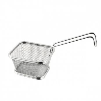 Originaler Korb komplett aus Edelstahl zum stilvollen Servieren von frittierten Kartoffelchips und frittierten Gerichten. Größe 10 x 8 cm.