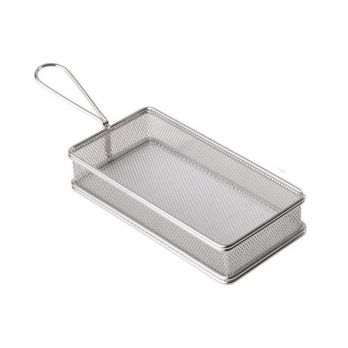 Mini-Edelstahlkorb, ideal zum Servieren von Speisen. Empfohlen für Schnellrestaurants. Maße: 26 x 13 cm.