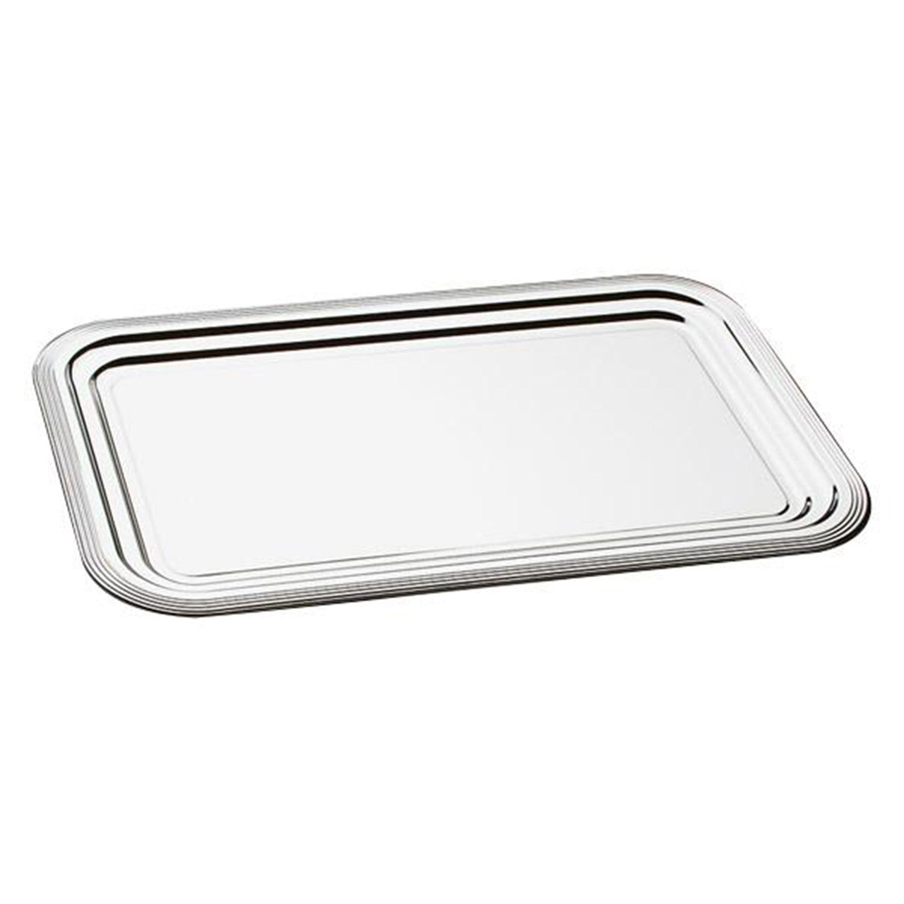 Rechteckiges Serviertablett / Tablett aus verchromtem Stahl mit Zierkante. Größe 53 x 32,5 cm (GN 1/1).