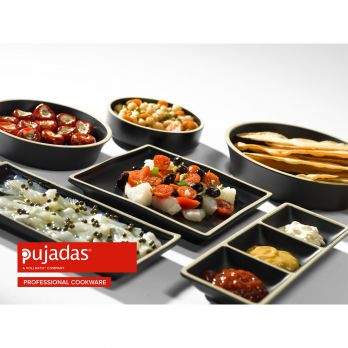 Schwarzes Melamintablett 26x13 cm für die Präsentation von Speisen.