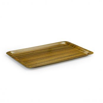 Die Tabletts aus sehr widerstandsfähigem Melamin mit Mahagoni-Dekor sind mit einer Silikonbeschichtung versehen, um ihre Rutschfestigkeit zu gewährleisten. Nicht spülmaschinenfest. Temperaturbeständig bis zu 70 Grad.