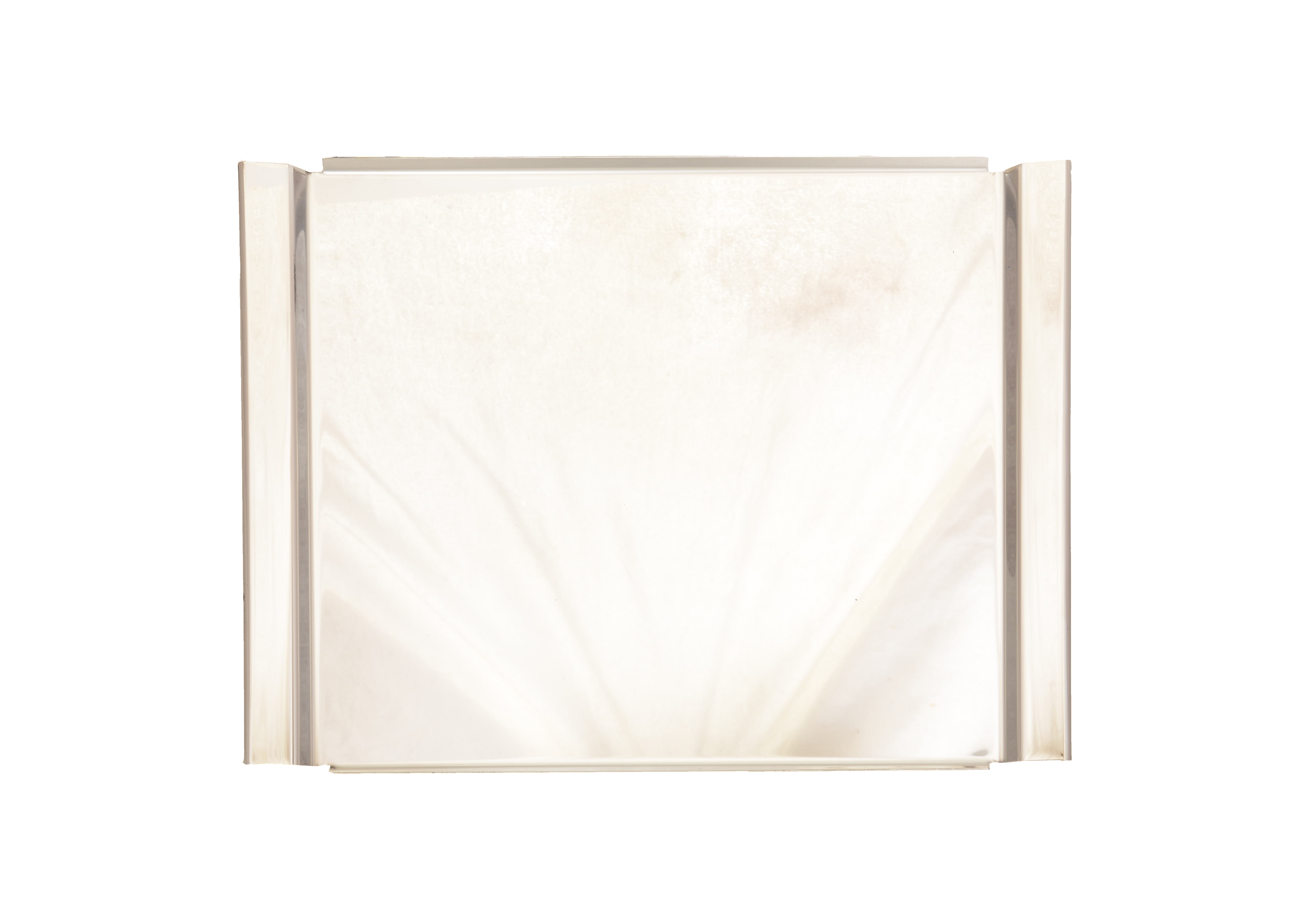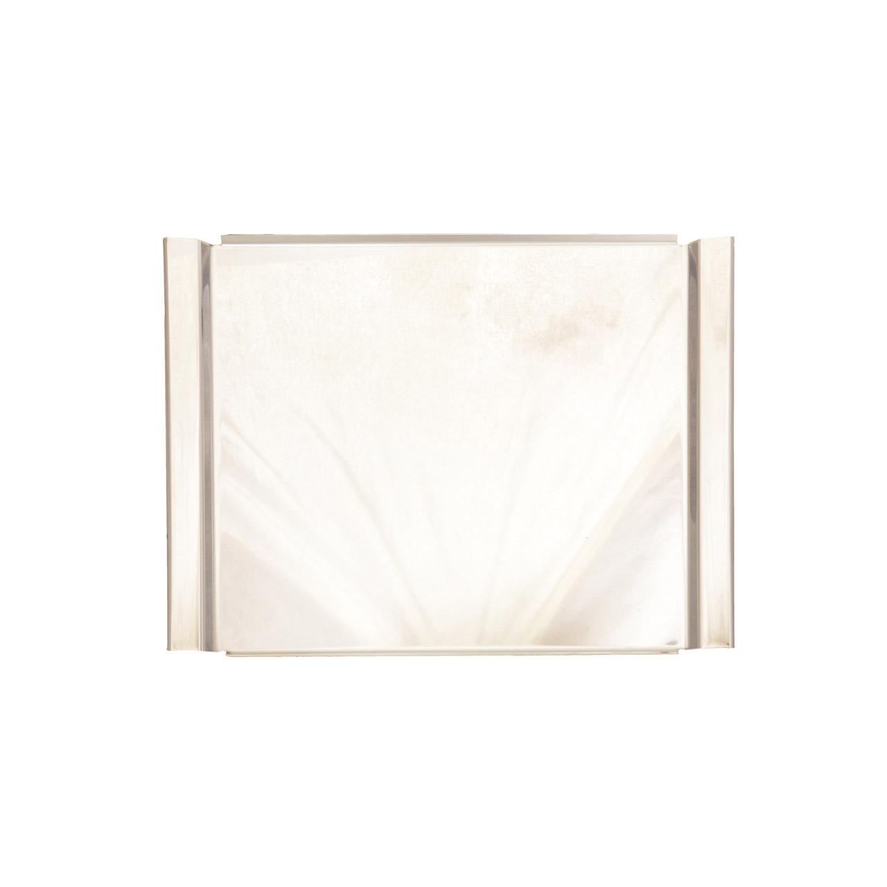 Rechteckige Edelstahlschale (43 x 33 cm), geeignet für Vitrinen.