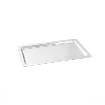 Massives Serviertablett aus Edelstahl mit den Maßen 65 x 44 cm.
