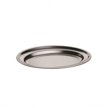 Ovales Tablett aus Edelstahl mit den Maßen 51 x 34 cm.