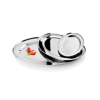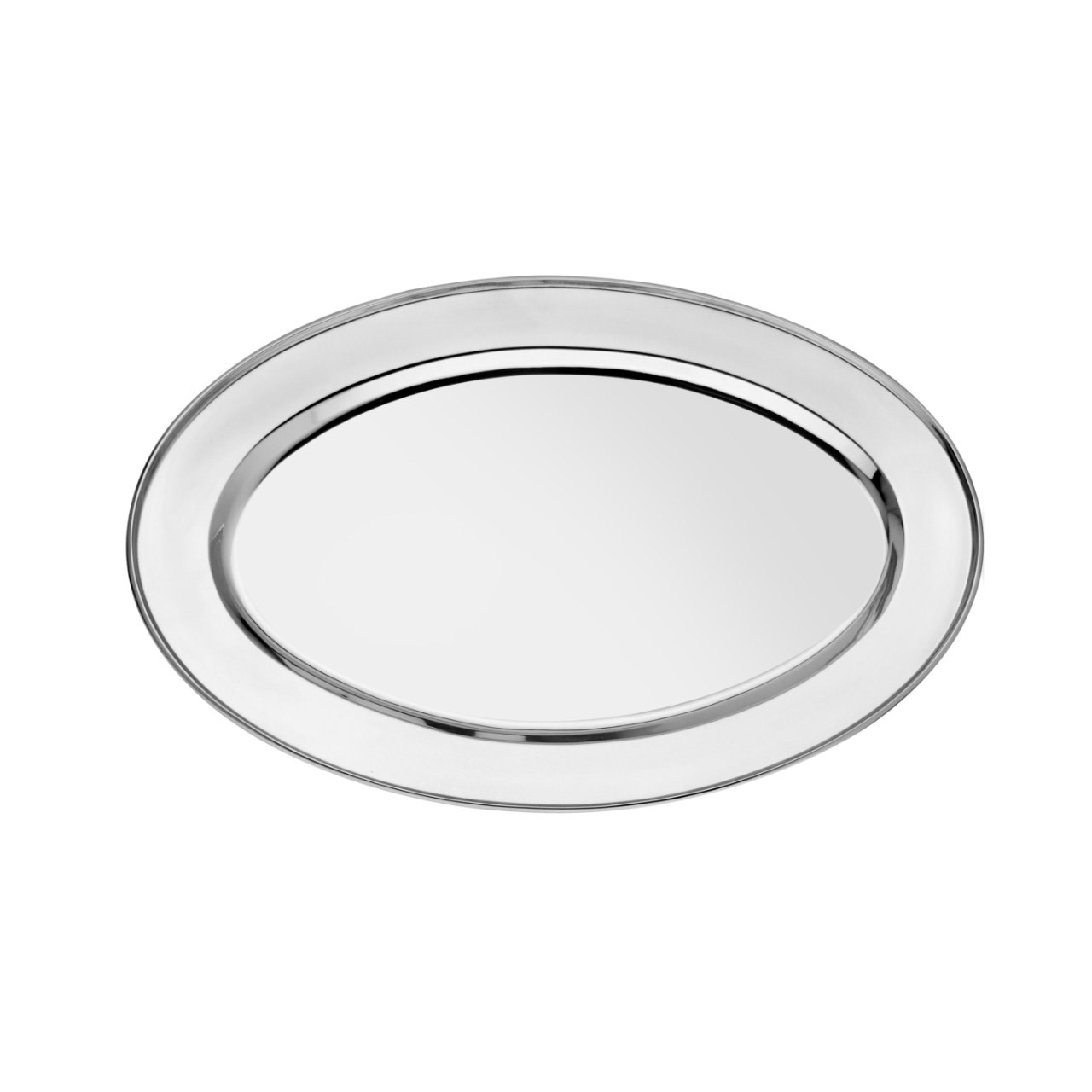Ovales Edelstahltablett mit einem Durchmesser von 50 cm.