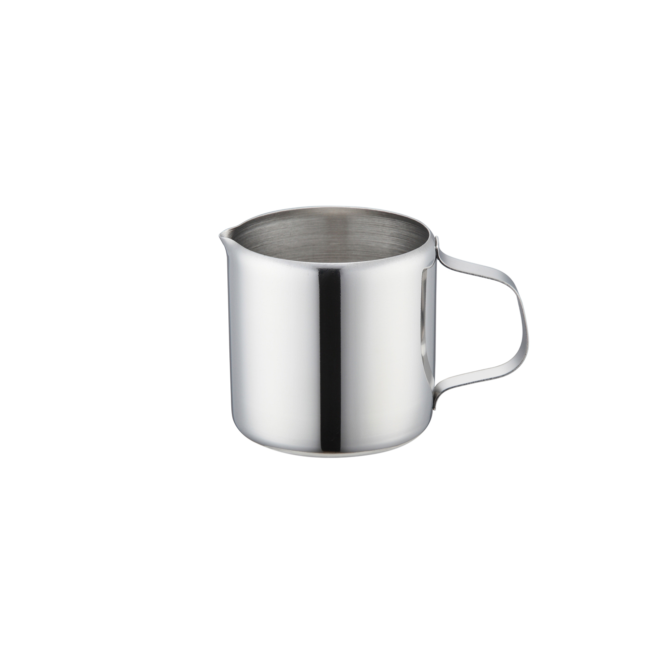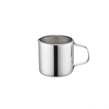 Milchkännchen aus Edelstahl mit einem Volumen von 0,14 l. 9 x 6 x 5,9 cm