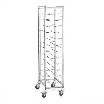 GN 1/1 Tablettwagen für 12 Tabletts, 60 x 39 x 180 cm, Edelstahl Chrom-Nickel. Ideal für den professionellen Einsatz in der Gastronomie. Hochwertiges Material garantiert Langlebigkeit und Zuverlässigkeit.