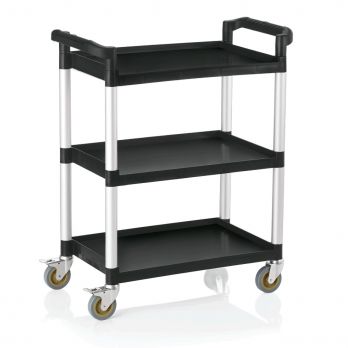 Servierwagen mit 3 Ablagen, 82 x 41 x 95 cm, aus Polypropylen/Aluminium. Ideal für den professionellen Einsatz in der Gastronomie. Hochwertiges Material garantiert Langlebigkeit und Zuverlässigkeit.