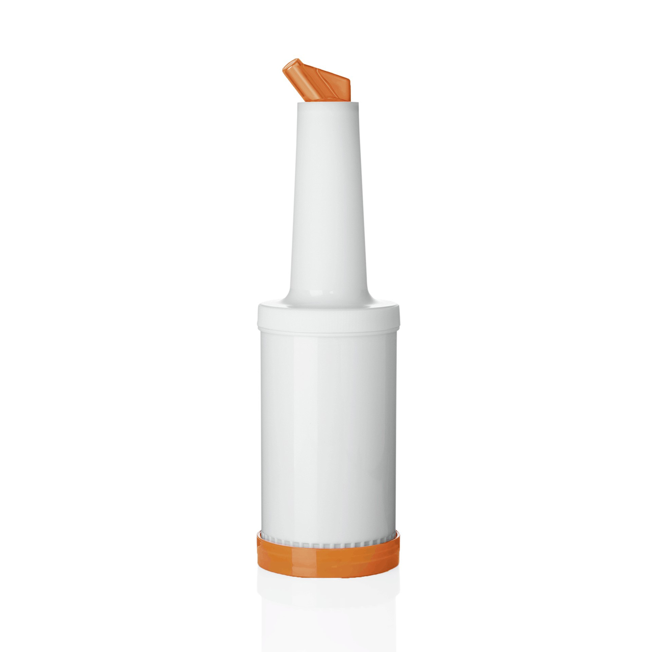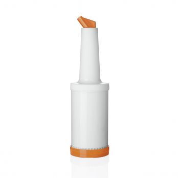 Die Barkeeper-Flasche von Pour Master ist eine Kombination aus einem Glas, einem farbigen Deckel, einem Deckel und einem Ausgießer. Barmannglas mit farbigem Deckel. Strapazierfähiges Polypropylen-Material. 1-Liter-Flasche, 0,85-Liter-Dose.