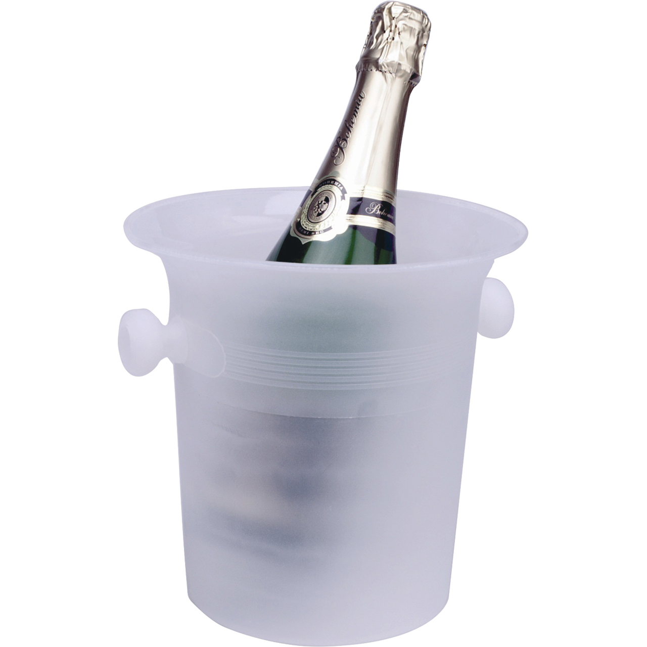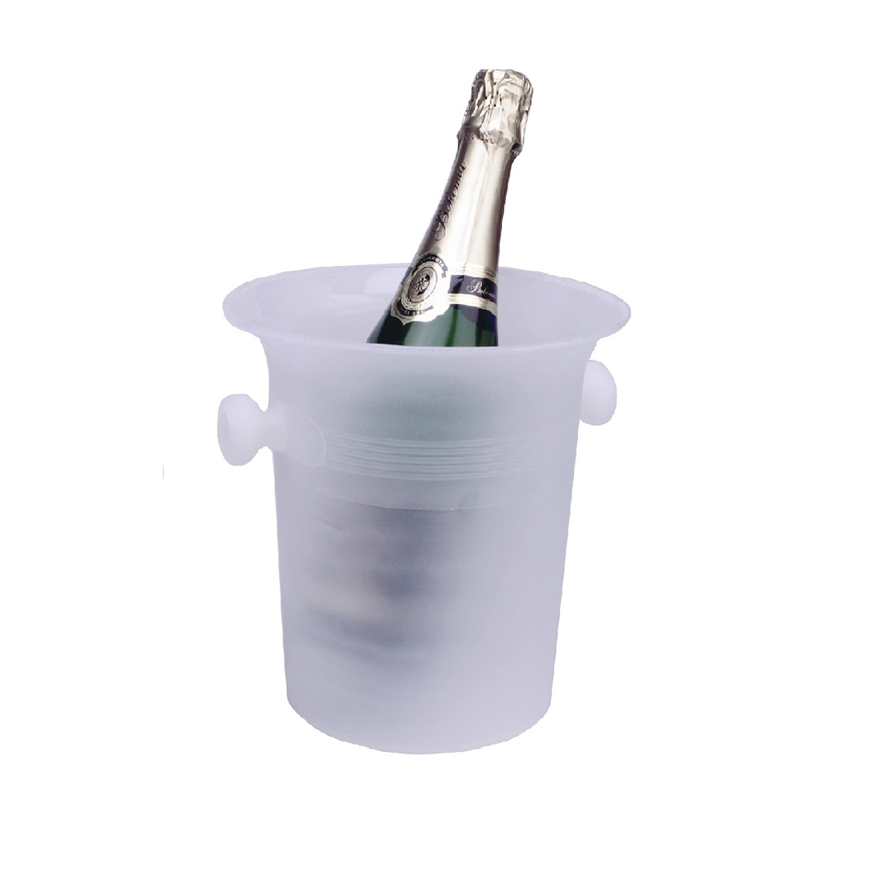 Kunststoffkühler für Flaschen aus flexiblem Polypropylen, der sehr langlebig ist und für jede Bar, jedes Restaurant und jede Weinhandlung geeignet ist. Volumen 4 l. Wein- und Champagnerkühler. Griffe an den Seiten für einfache Handhabung. Farbe weiß.
