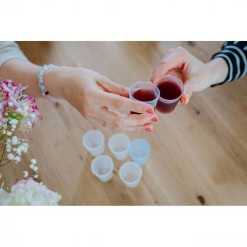 Kunststoff-Schnapsglas mit einem Volumen von 0,04 l, es sind 6 Stück in der Packun