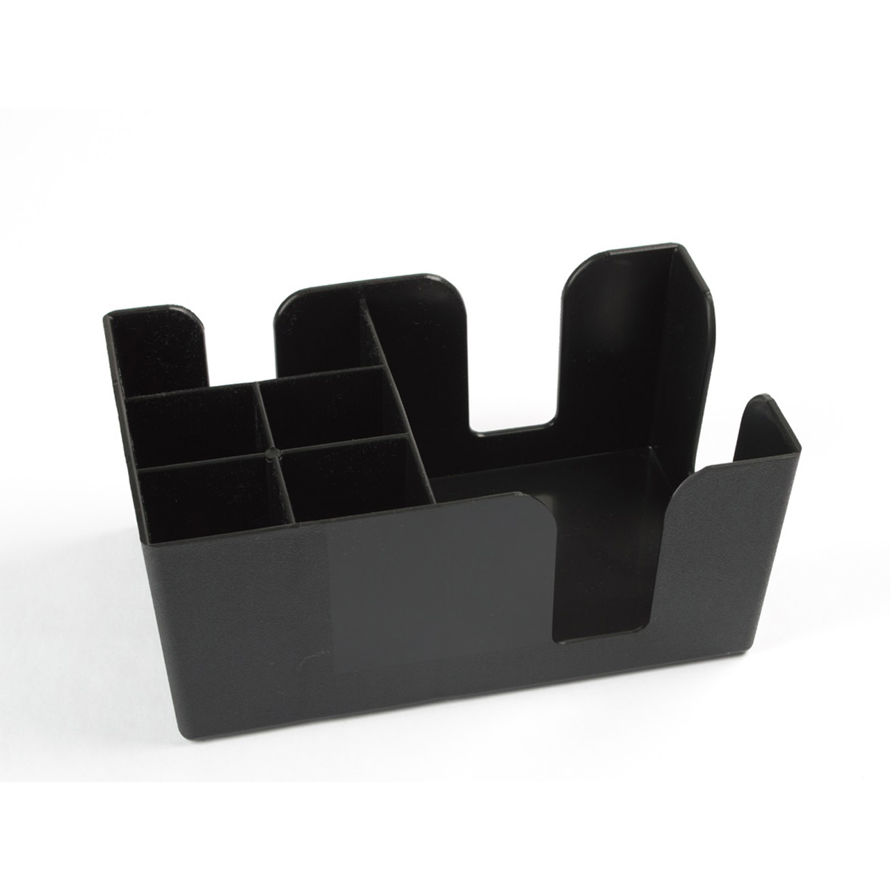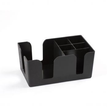 Die praktische Barablage für Servietten und Strohhalme besteht aus schwarzem ABS-Kunststoff. Das Tablett eignet sich zum Ordnen von Servietten, Löffeln, verpacktem Zucker, Sahne usw. Das Bartablett eignet sich für Cocktailservietten. Größe 24 x 15 cm, Höhe 11 cm.