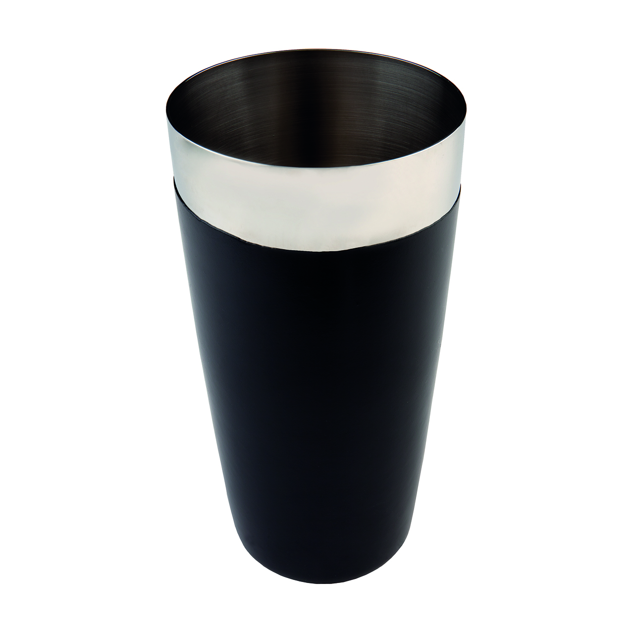 Professioneller Boston Shaker aus Edelstahl poliert mit schwarzem Vinyl, ohne Glas
